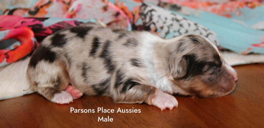 Male- Blue Merle, Looking like Blue eyes, Looks like his mom Molly and her son Mister! Super laid back loving boy. Should be about the same size and build as Mister. Estimated at this time approx. 10 lbs grown. $2000 PET ONLY RESERVED